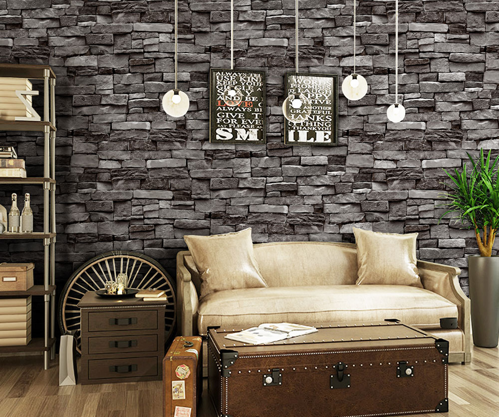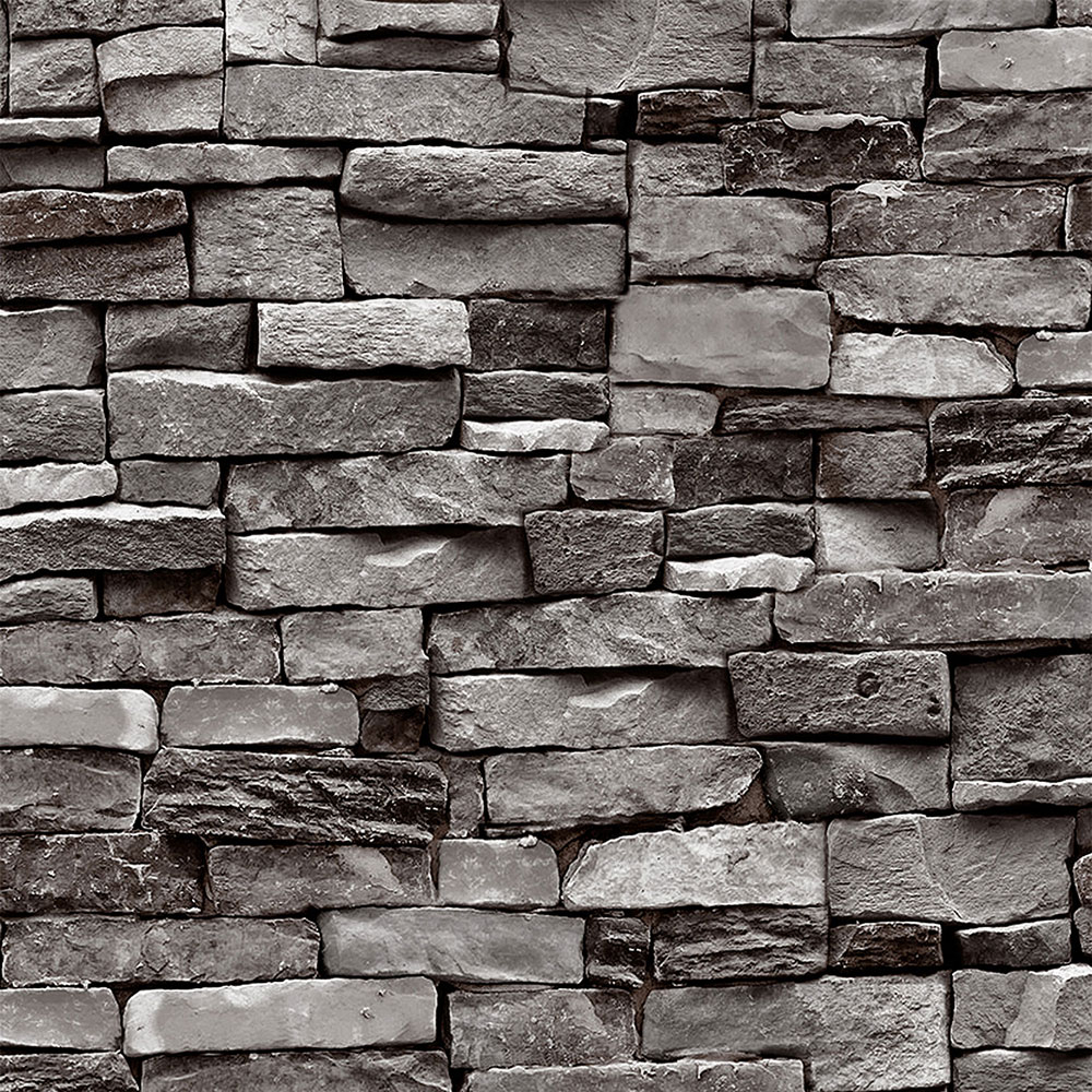 Omyvatelná vinylová tapeta na zeď s dekorem šedého kamene, imitace kamenné zdi; krupičková textura..