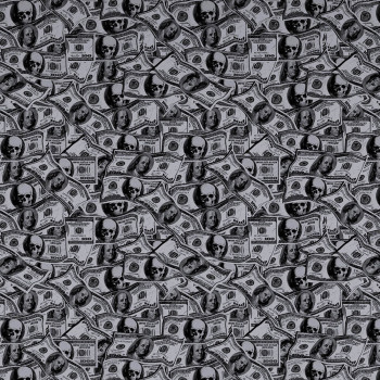 Luxusní vliesová obrazová tapeta s motivem dolarových bankovek a lebek na strukturovaném podkladu.