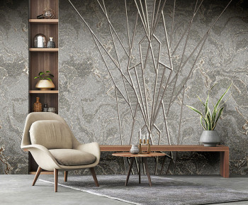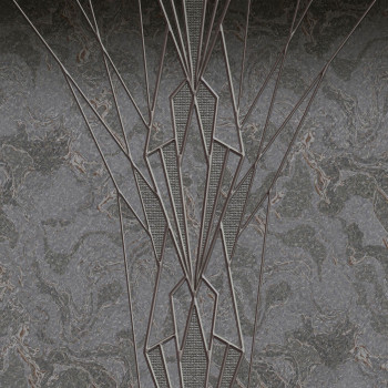 Luxusní vliesová obrazová tapeta s motivem mramoru a geometrickým obrazcem na šedém strukturovaném podkladu.