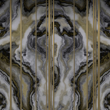 Luxusní vliesová obrazová tapeta s motivem achátu a metalickými pruhy.