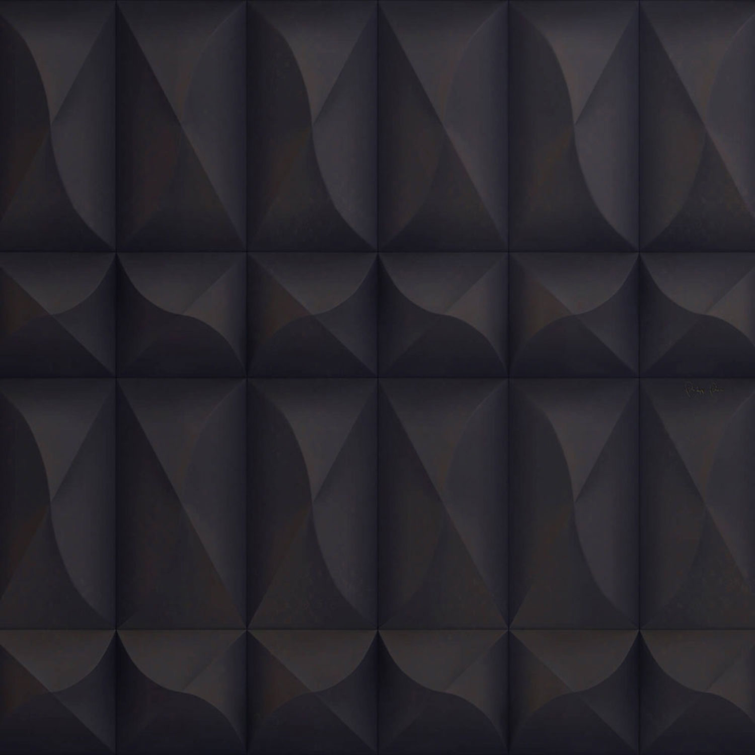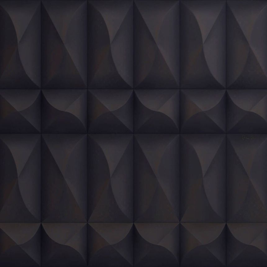 Luxusní vliesová obrazová tapeta s černým geometrickým vzorem na textilním strukturovaném podkladu.