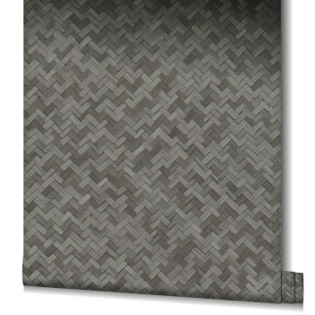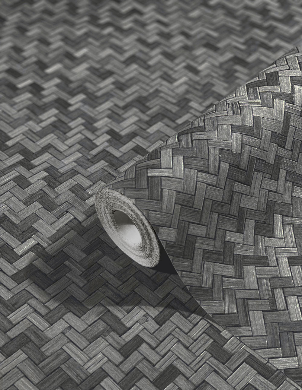 Luxusní, jemně plastická, šedo-černá vliesová tapeta s vinylovým povrchem - imitace lýkové rohože.