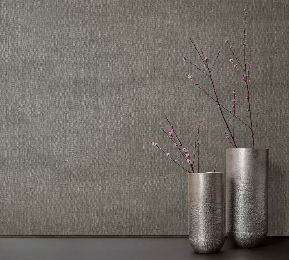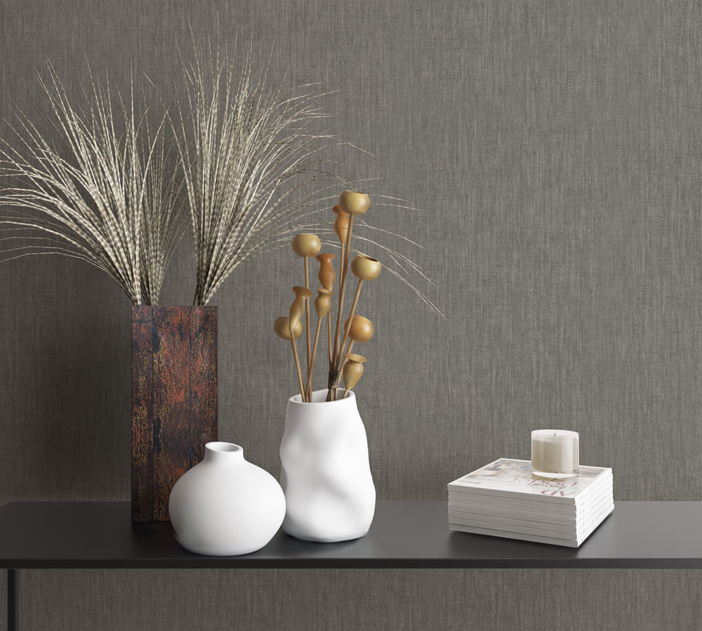 Luxusní šedo-hnědá vliesová tapeta s vinylovým povrchem - látková struktura.