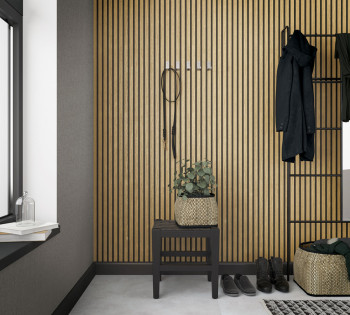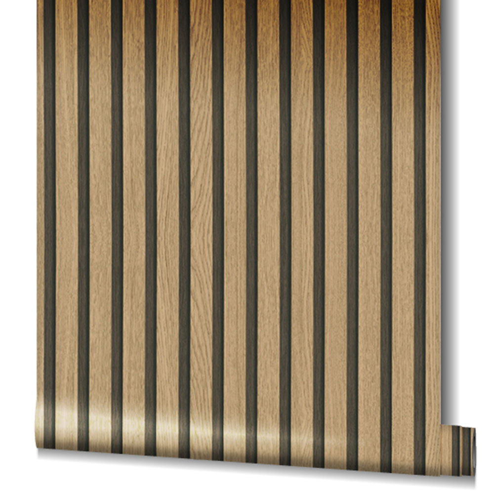 Jemně plastická 3D vliesová tapeta na zeď, imitace dřeva, dřevěných palubek, obložení, lamel. Vliesová tapeta s vinylovým povrchem.