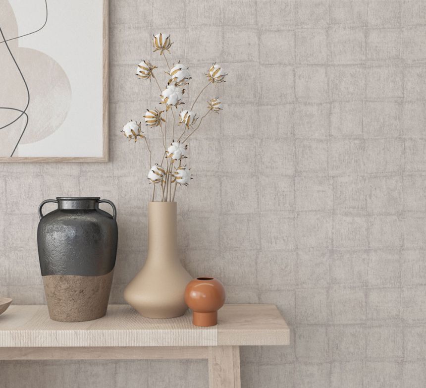 Luxusní šedá vliesová tapeta na zeď, látková textura, kostka.