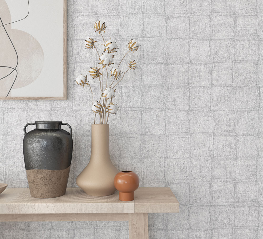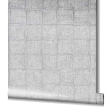 Luxusní šedá vliesová tapeta na zeď, látková textura, kostka.