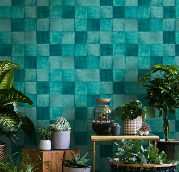 Tyrkysová geometrická vliesová tapeta s vinylovým povrchem 45721 Zellige, Marburg