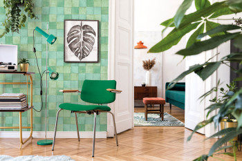 Vliesová tapeta s vinylovým povrchem s dekorem zelených dlaždic. Velikost dlaždice cca 10,5x10,5cm.
