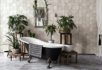 Vliesová tapeta s vinylovým povrchem s dekorem šedo-bílých dlaždic. Velikost dlaždice cca 10,5x10,5cm.