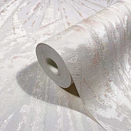 Krémově bílá vliesová tapeta na zeď s vinylovým povrchem se vzorem imitace štuku. Tapeta je matná.