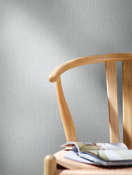 Světle šedá vliesová tapeta na zeď s vinylovým povrchem se vzorem látkové struktury. Tapeta je matná.