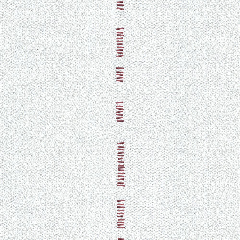 Vliesová tapeta s vinylovým povrchem, bílo-šedá plastická vlnková textura, červený čárkovaný pruh.