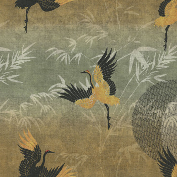 Luxusní hnědo-zelená vliesová tapeta s ptáky 72901, Zen, Emiliana Parati
