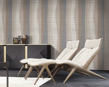 Luxusní hnědá vliesová tapeta na zeď, proužky v různých látkových texturách.
