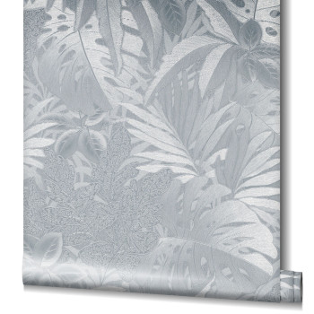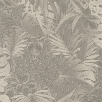 Luxusní stříbrná vliesová tapeta s listy 33301, Botanica, Marburg