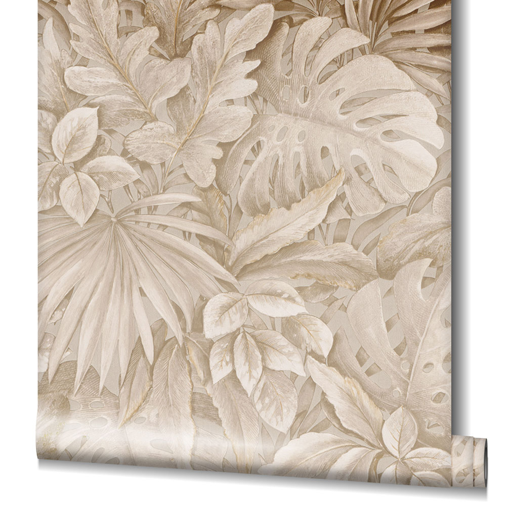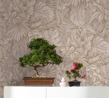 Luxusní béžová vliesová tapeta s listy 33307, Botanica, Marburg