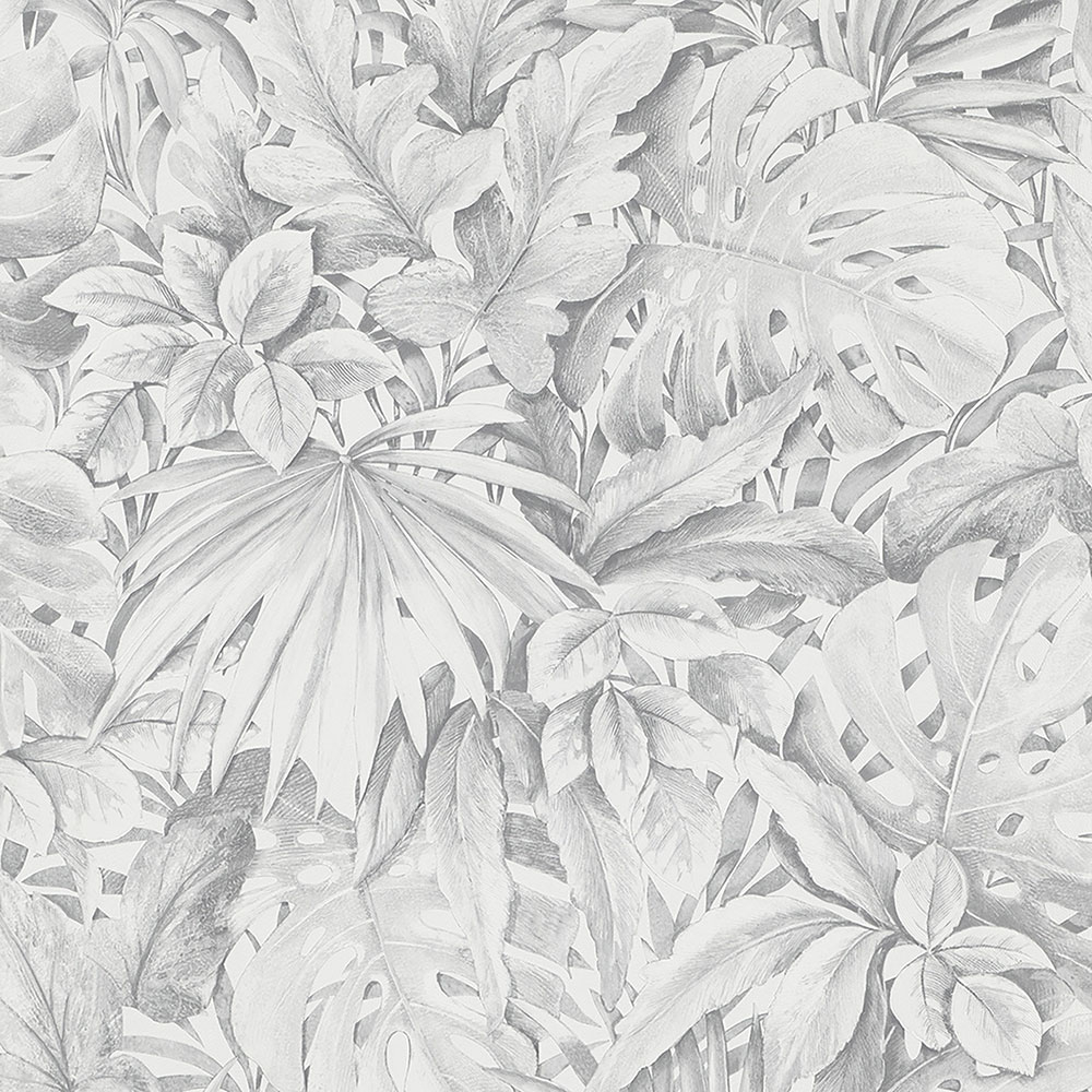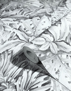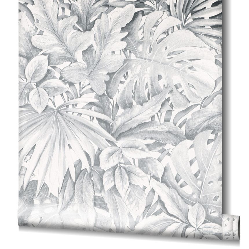 Luxusní, jemně plastická, šedo-bílá vliesová tapeta s vinylovým povrchem - listy.