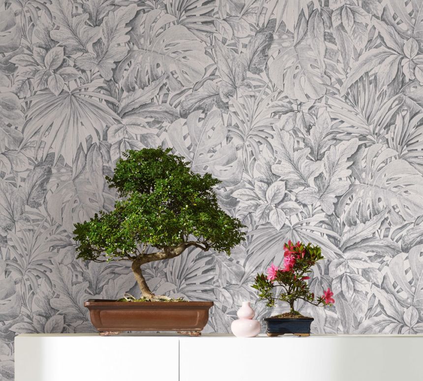 Luxusní šedá vliesová tapeta s listy 33308, Botanica, Marburg