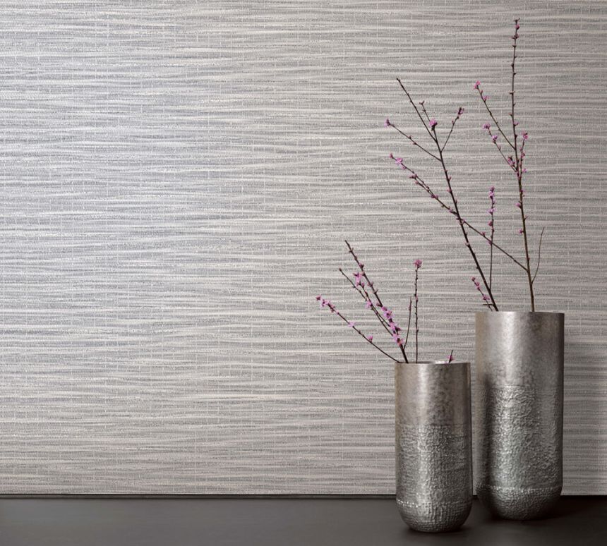 Luxusní, jemně plastická, šedo-bílá vliesová tapeta s vinylovým povrchem - imitace tkané rohože.