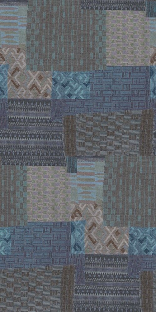 Vliesový obrazový panel - design koláže etno vzorů v modrých a hnědých odstínech. 2 panely
