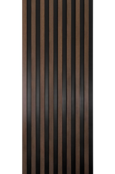 Dekorační lamely z odolného materiálu, dekor tmavý dub, vhodné do jakékoli místnosti, jako je koupelna, hala nebo obývací pokoj.