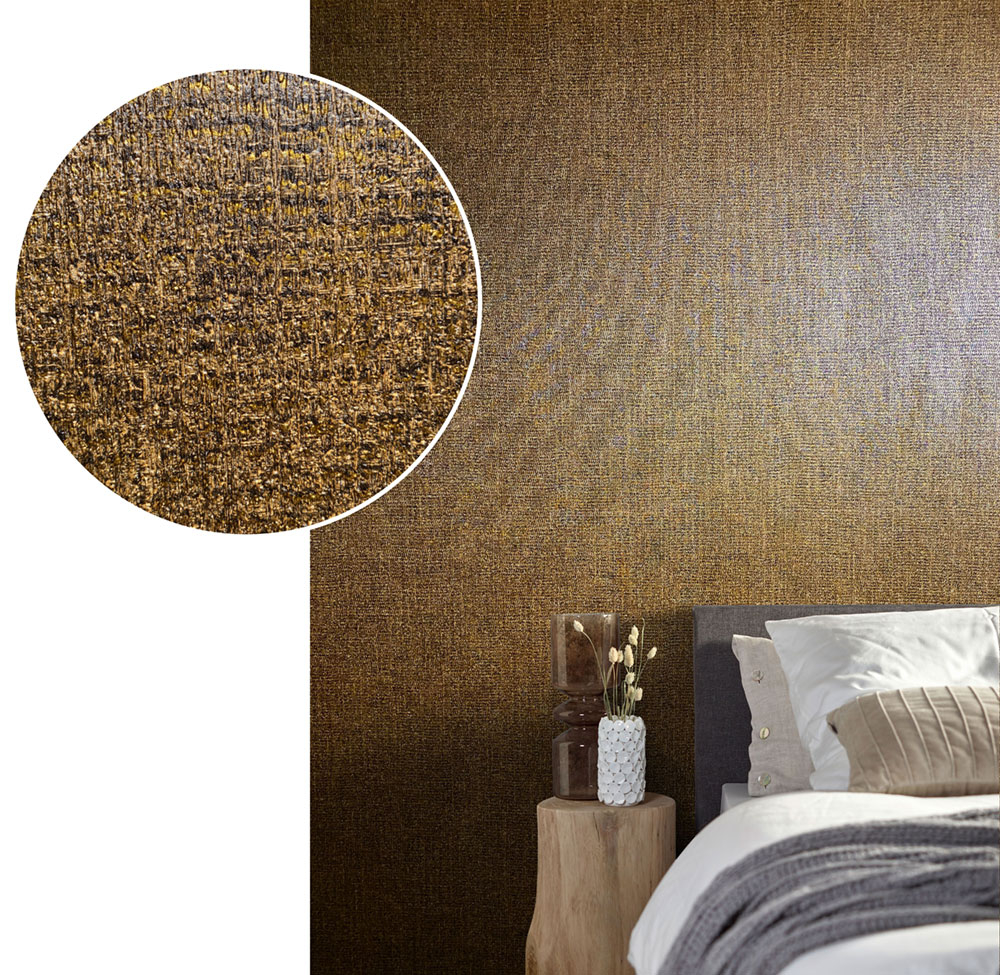 Luxusní hnědo-bronzová vliesová tapeta na zeď, imitace hrubé látky.