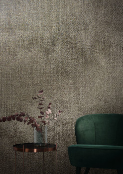 Luxusní hnědo-zlatá vliesová tapeta na zeď, imitace hrubé látky.