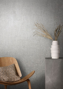 Luxusní metalická vliesová tapeta na zeď, imitace hrubé látky v odstínech metalické zelené a stříbrné.
