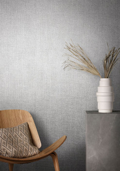 Luxusní metalická šedo-stříbrná vliesová tapeta na zeď, imitace hrubé látky.
