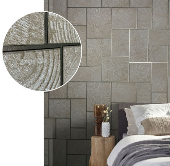 Béžová vliesová tapeta na zeď, imitace dřeva, dřevěného obkladu 33225, Natural Opulence, Marburg