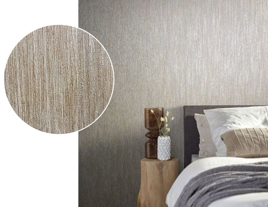 Luxusní strukturovaná žíhaná tapeta na zeď, odstíny béžové, zlaté odlesky.