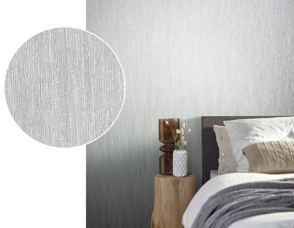 Luxusní strukturovaná žíhaná tapeta na zeď, odstíny šedé, stříbrné odlesky.