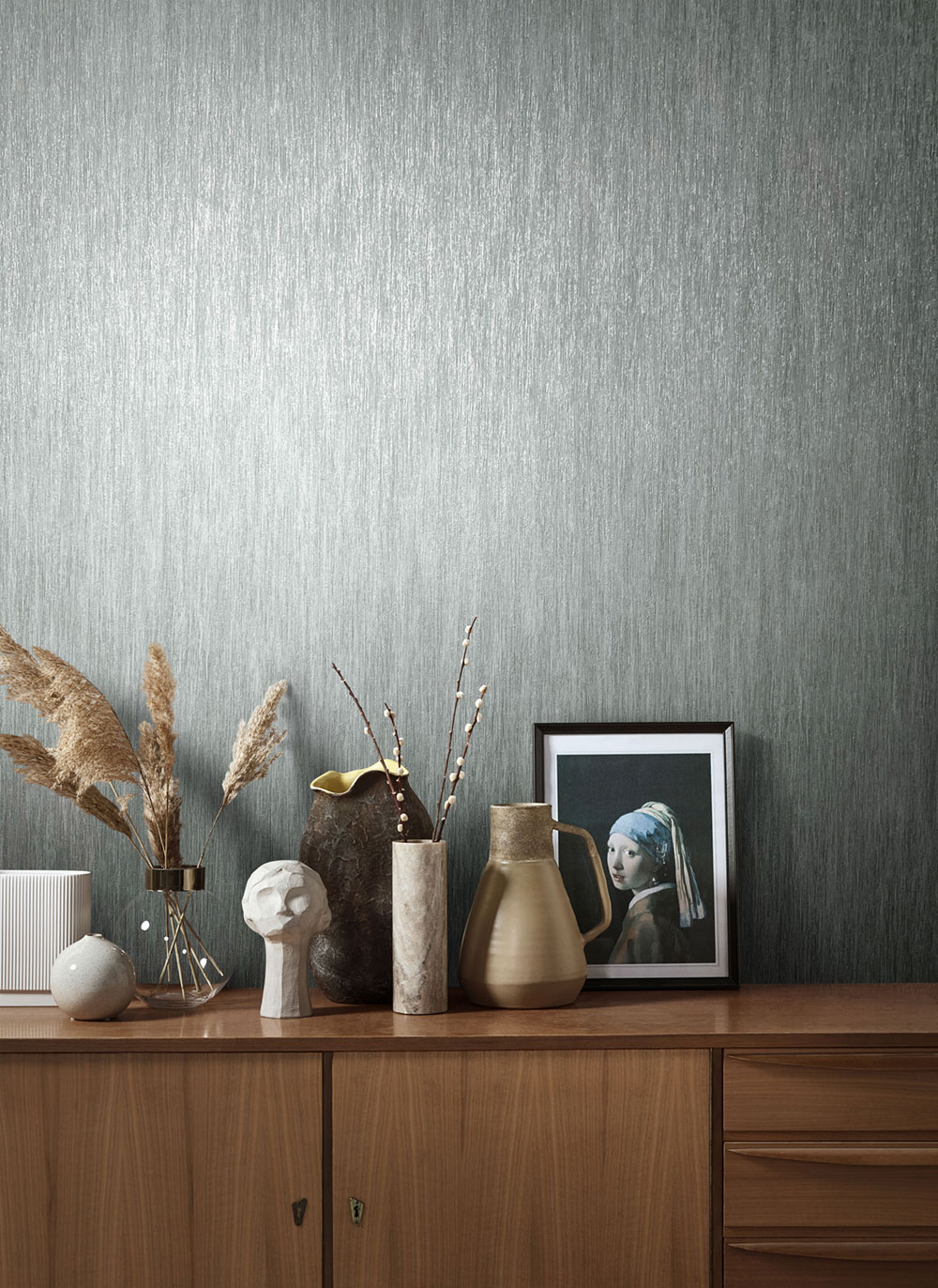 Luxusní strukturovaná žíhaná tapeta na zeď, odstíny šedé, stříbrné odlesky.