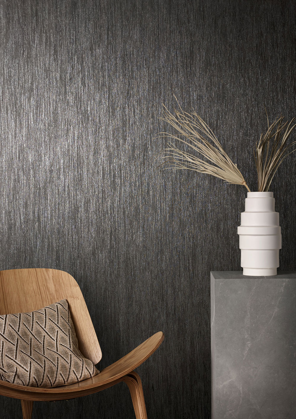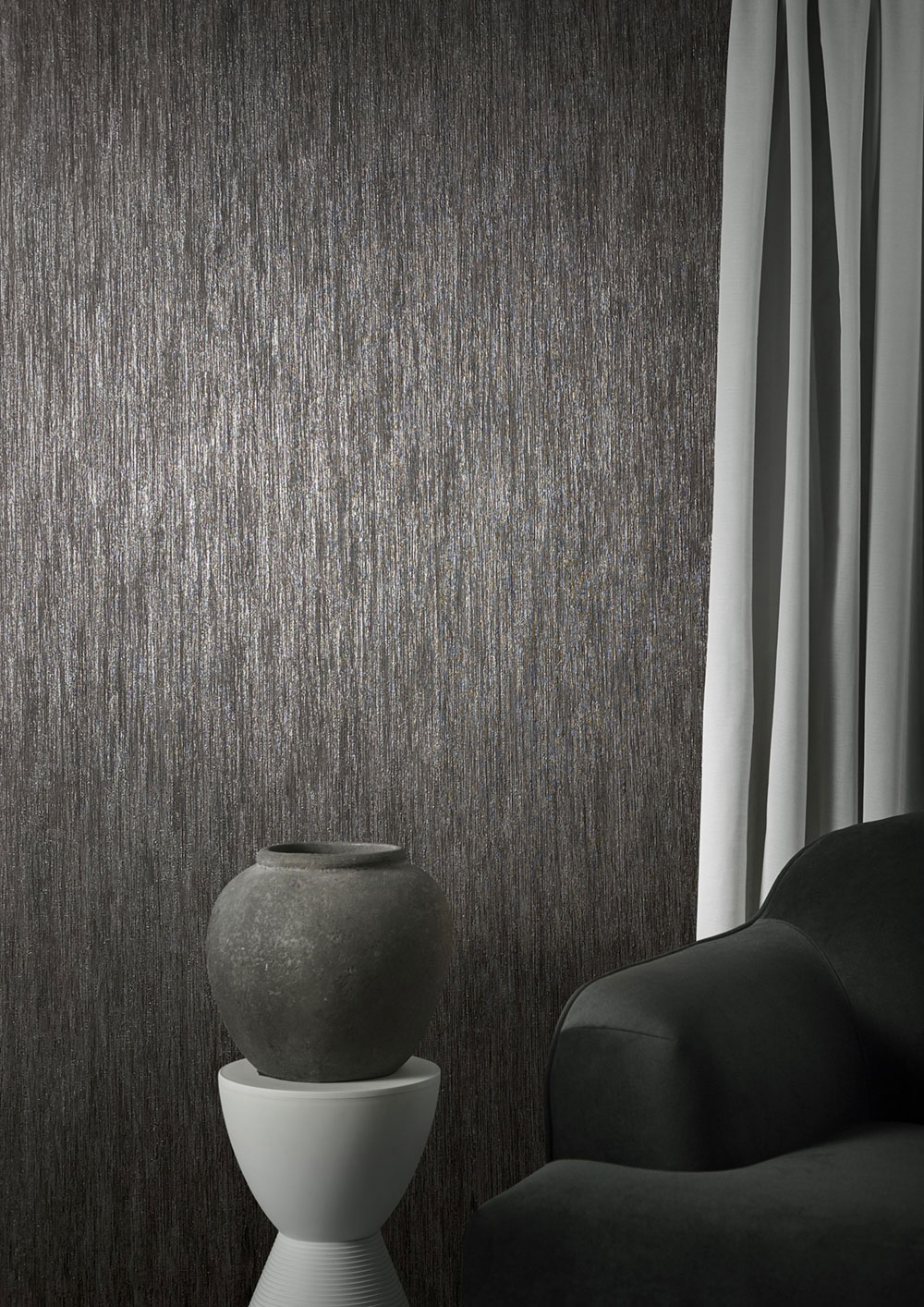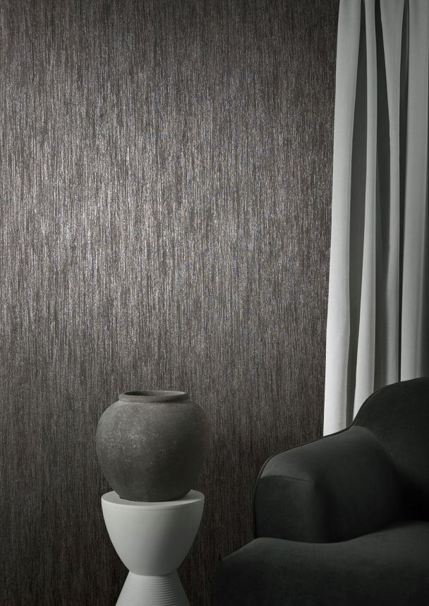 Luxusní strukturovaná žíhaná vliesová tapeta na zeď, černá se stříbrnými odlesky.
