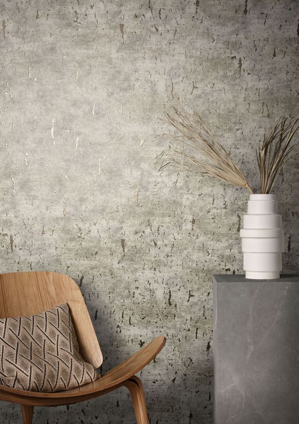 Luxusní vliesová tapeta s vinylovým povrchem, šedo-béžová s metalickými zlatavými prolisy.