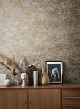 Luxusní hnědo-zlatá vliesová tapeta na zeď, imitace betonu 33256, Natural Opulence, Marburg
