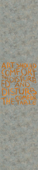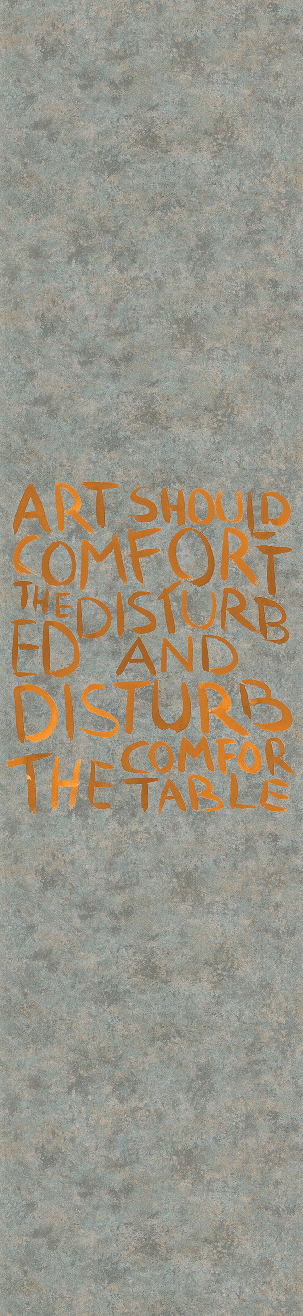 Luxusní vliesová obrazová tapeta s vinylovým povrchem, metalický zeleno-šedo-béžový podklad s oranžovým nápisem.