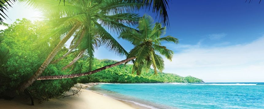 Vliesová obrazová tapeta Palmy a pláž 44108, 250 x 104 cm, Photomurals, Vavex