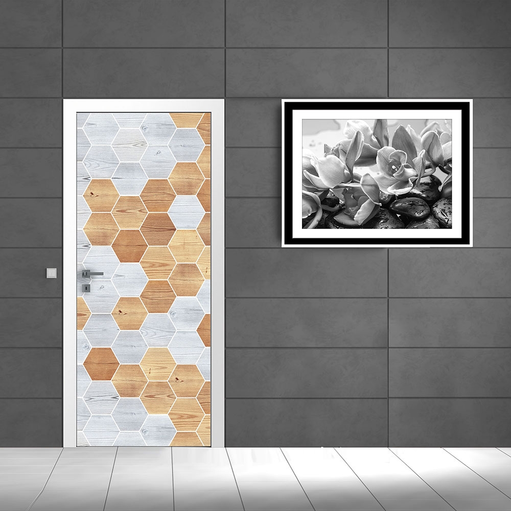 Vliesová obrazová tapeta na dveře Hexagony 33101, 91 x 211 cm, Photomurals, Vavex