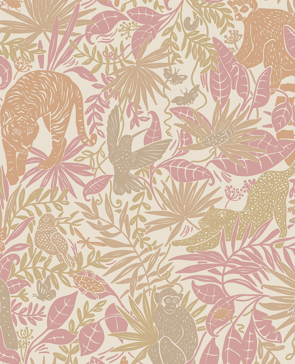 Růžová dětská vliesová tapeta na zeď džungle, 323022, Explore, Eijffinger