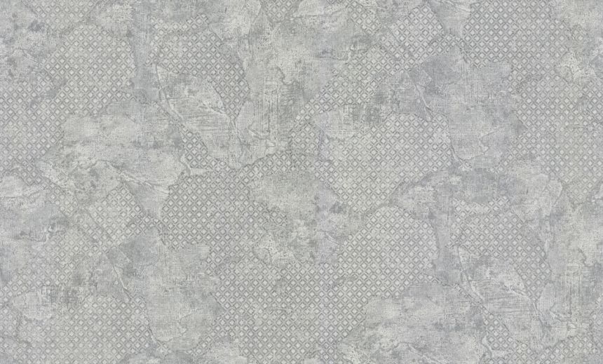 Luxusní šedo-stříbrná vliesová tapeta - imitace štukové omítky s jemným geometrickým podkladem.