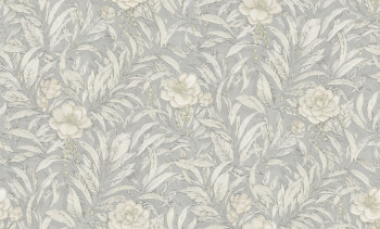 Luxusní stříbrná vliesová tapeta s vinylovým povrchem, květinový vzor.