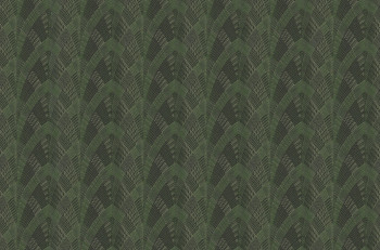 Luxusní metalická zelená vliesová tapeta s geometrickým vzorem v art deco stylu.