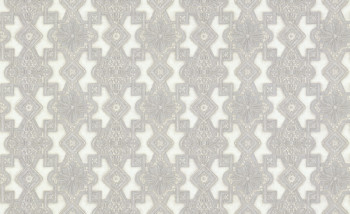 Luxusní béžovo-stříbrná tapeta na zeď s geometrickými ornamenty.
