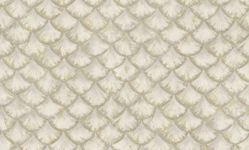 Luxusní stříbrno-zlatá tapeta na zeď s geometrickým vzorem ve tvaru rybích šupin.