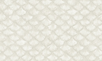 Luxusní krémovo-stříbrná tapeta na zeď s geometrickým vzorem ve tvaru rybích šupin.