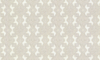 Luxusní béžovo-stříbrná tapeta na zeď s geometrickými ornamenty se zlatavými odlesky.