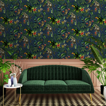 Luxusní vliesová tapeta EE22535, Opice, tukani, tropický prales, Essentials, Decoprint