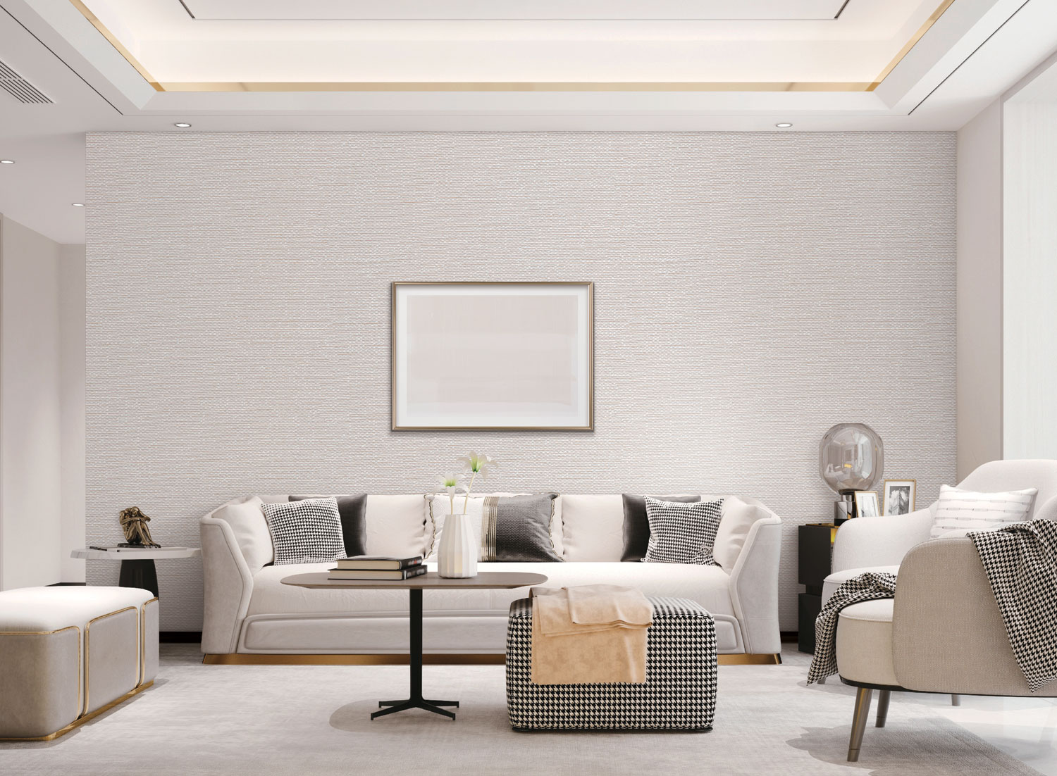Pololesklá krémová vliesová tapeta na zeď, hrubší textilní struktura.