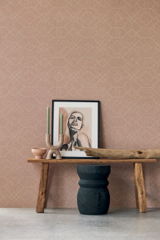 Starorůžová vliesová tapeta na zeď, geometrický vzor, jemně plastická textura.
